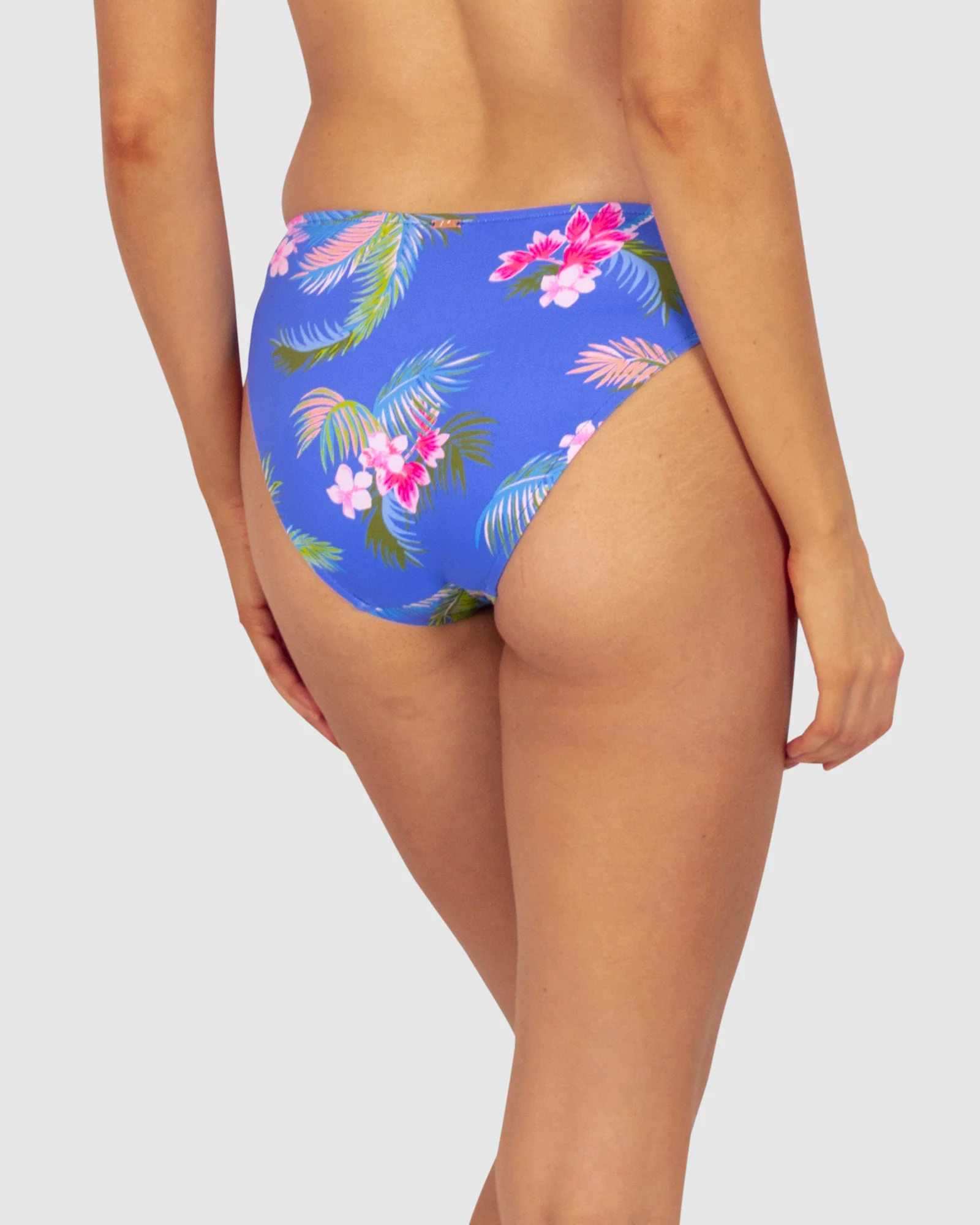 Baku's Amalfi Regular Bikini Bottom features a regular bottom. Transport yourself to a lavish paradise with our tropical floral- Amalfi. Embracing the essence of the natural beauty and picturesque landscapes of the Amalfi coast, this design boasts vibrant palm leaves intertwined with delicate florals, creating a captivating visual feast.
