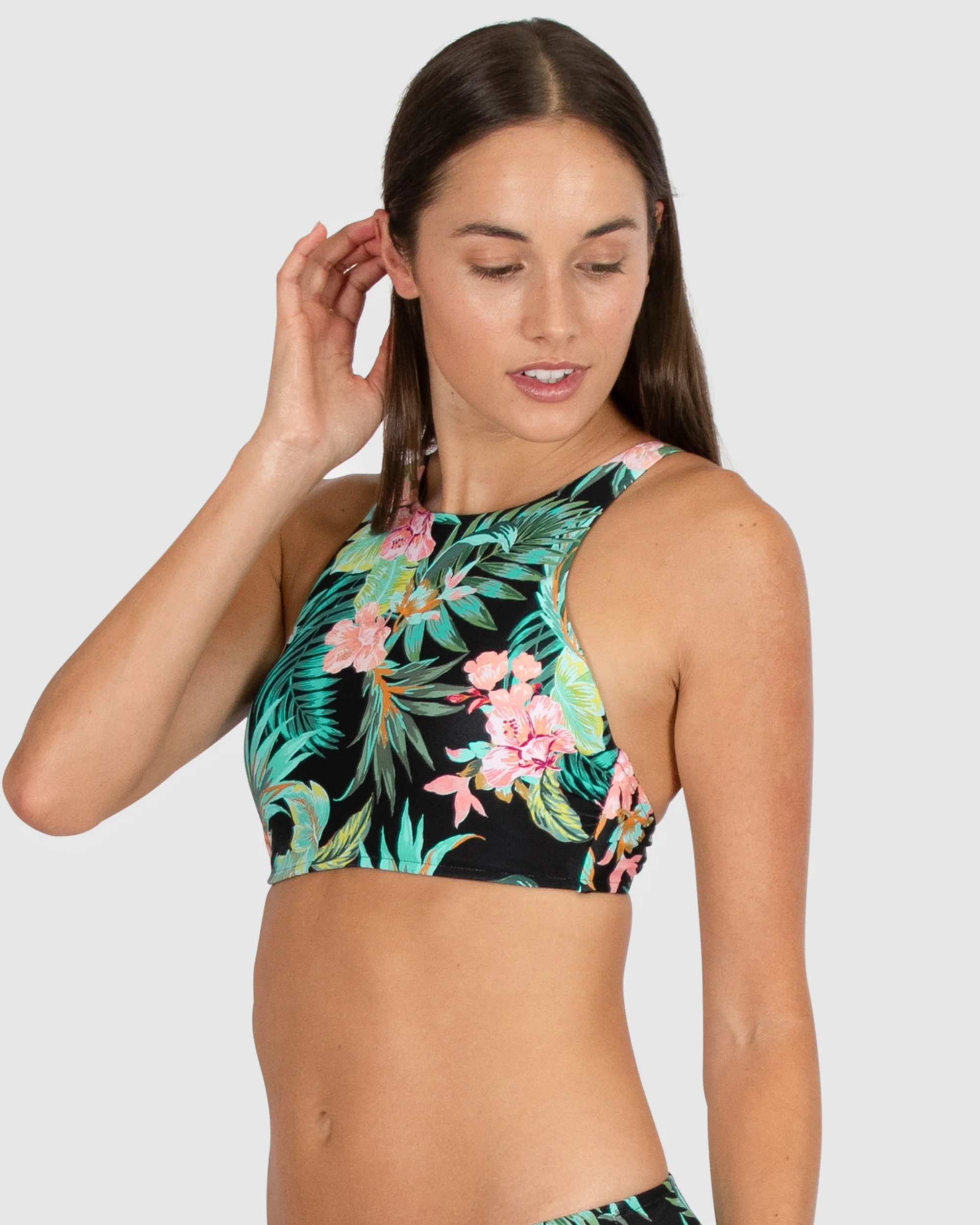 Baku's Bermuda High Neck Bra features a high neck, soft removable cups, boning and adjustable and convertible straps. Bermuda is an ultra-saturated tropical vibe, inspired by the palm trees, local floral displays and clear blue waters of idyllic summer getaways.