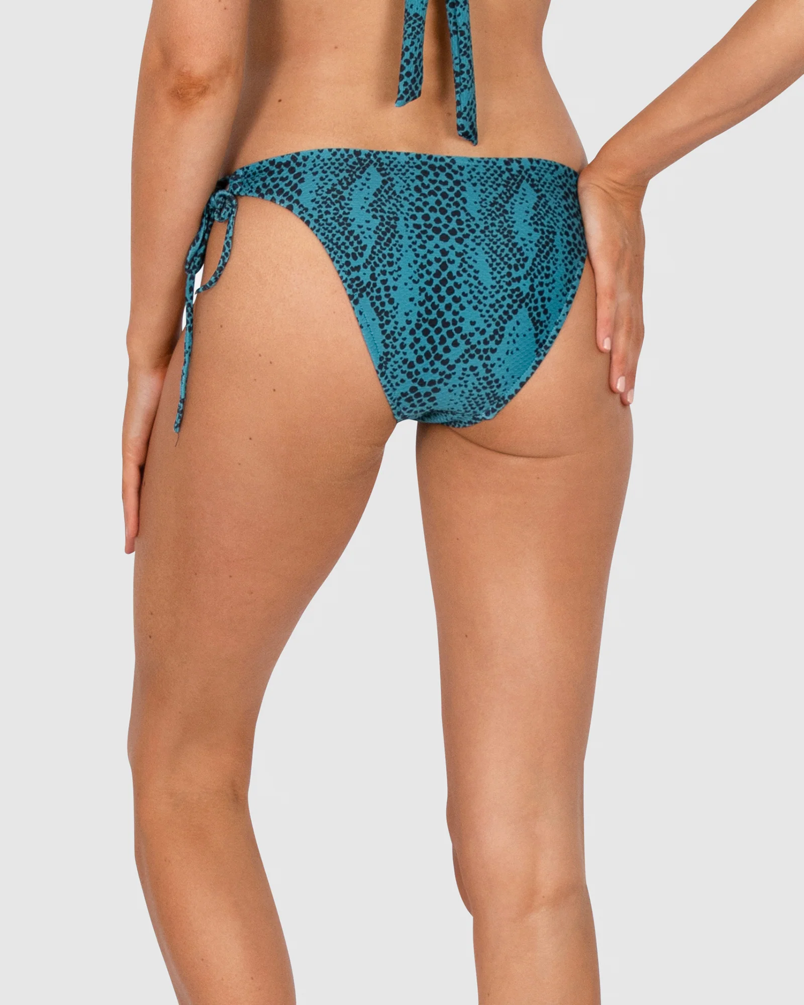 Baku's Everglades Rio Loopside Bikini Pant features adjustable side ties with tassel detailing. It has a cheeky rio coverage bottom. Follow us into a world of wilderness and wonder and get in touch with your animal instincts with Everglades. Animal print continues to dominate with snakeskin sliding into focus. Deep rich tones make up this interesting scale texture.